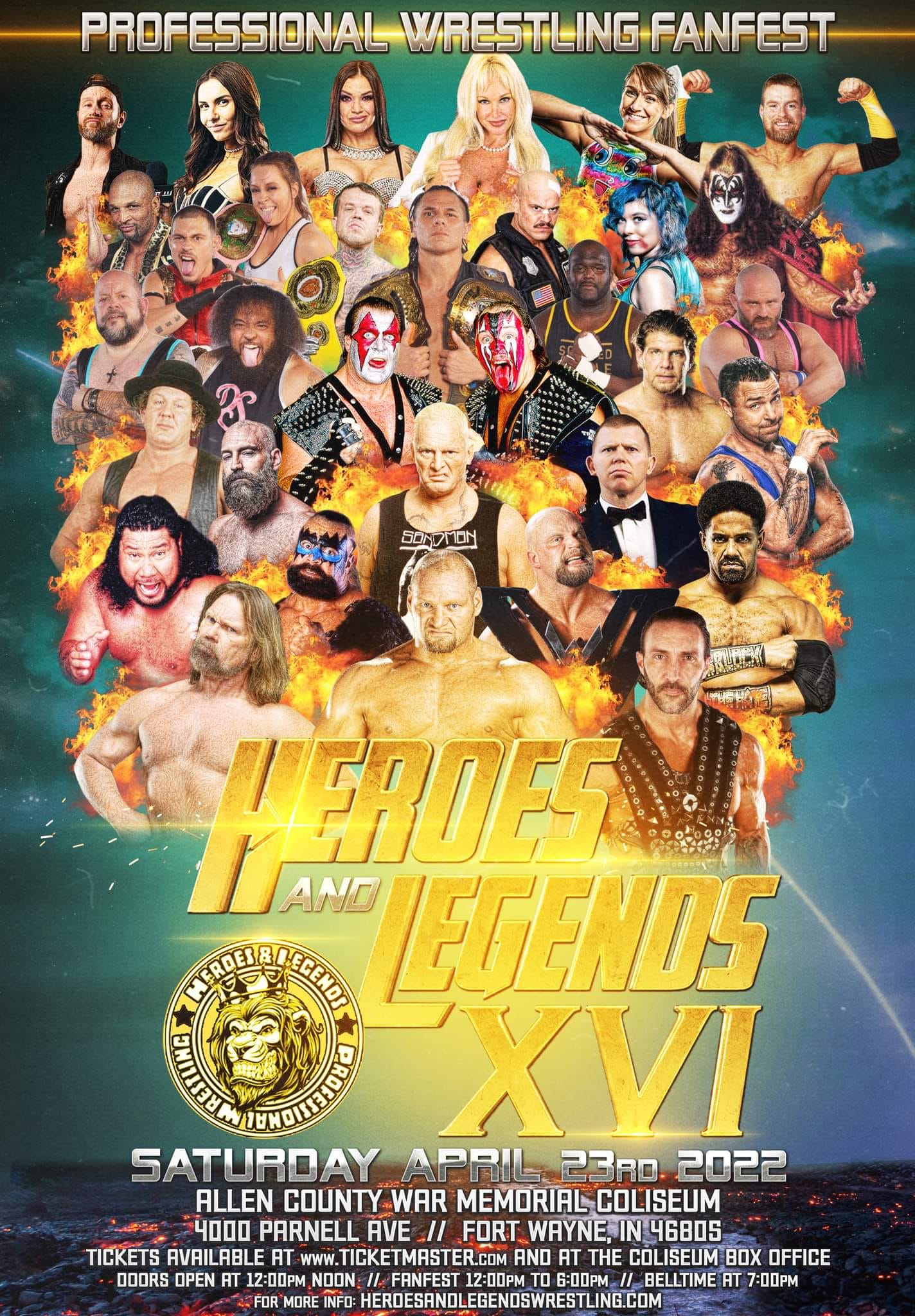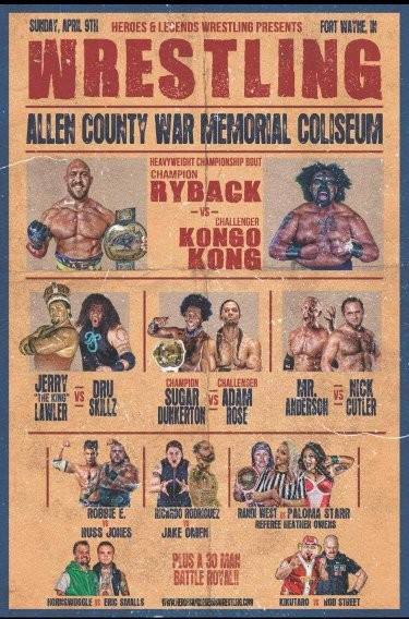 Heroes & Legends Wrestling XVI April 23, 2022 Allen County War Memorial Coliseum Fort Wayne, IN. The show started with a battle royale..